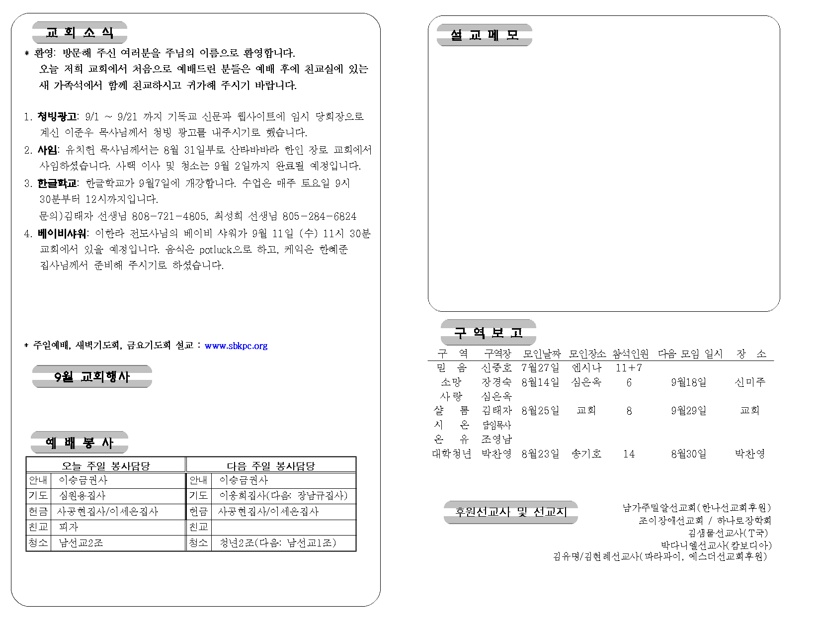 연락처: 교회 805-681-0990 | Email: sbkpclove@gmail.com