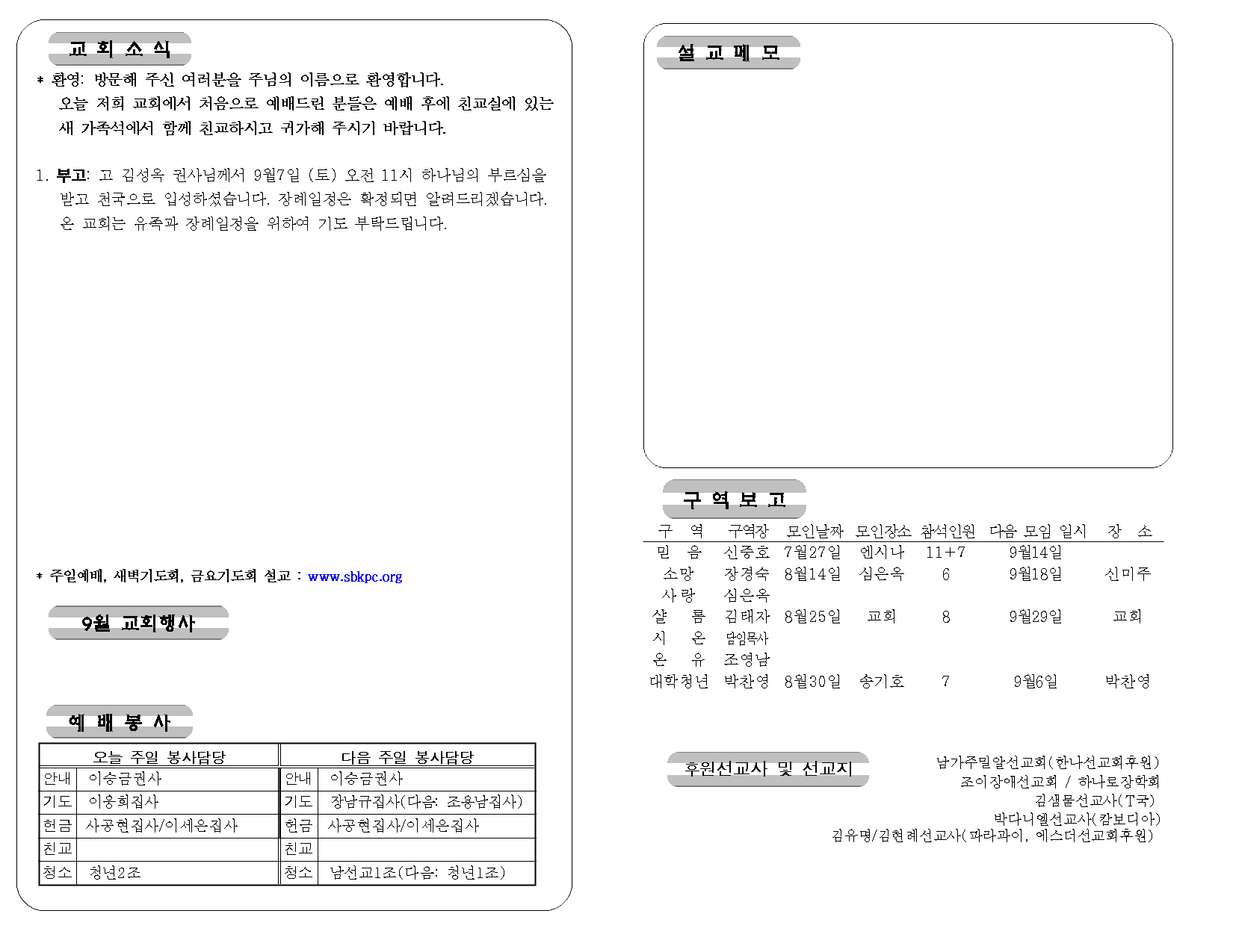 행사 및 교회소식