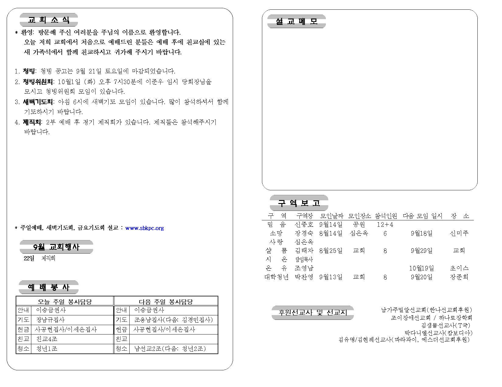 행사 및 교회소식